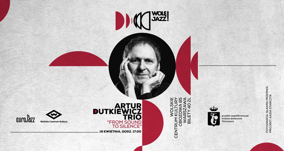 Organizatorem cyklu koncertów Wolę JAZZ! jest Fundacja Popularyzacji Muzyki Jazzowej EuroJAZZ. Projekt „Jazz dla każdego” jest współfinansowany ze środków m.st. Warszawy. Kultura Warszawy – otwarta i różnorodna. Fundacja Popularyzacji Muzyki Jazzowej EuroJAZZ – fundacja non profit od ponad 16 lat popularyzująca jazz w Polsce. Organizator koncertów i wydarzeń jazzowych w Warszawie. ARTUR DUTKIEWICZ TRIO – From sound to silence